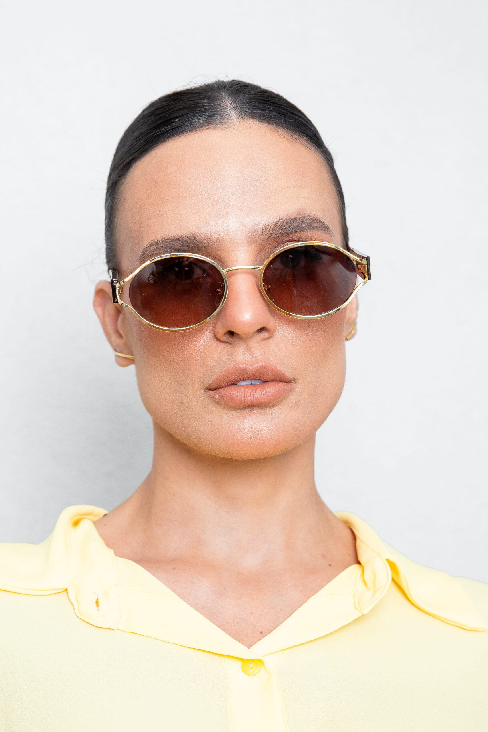Óculos de Sol Larissa – Marrom Camuflado com Detalhes em Metal Dourado | Estilo Sofisticado