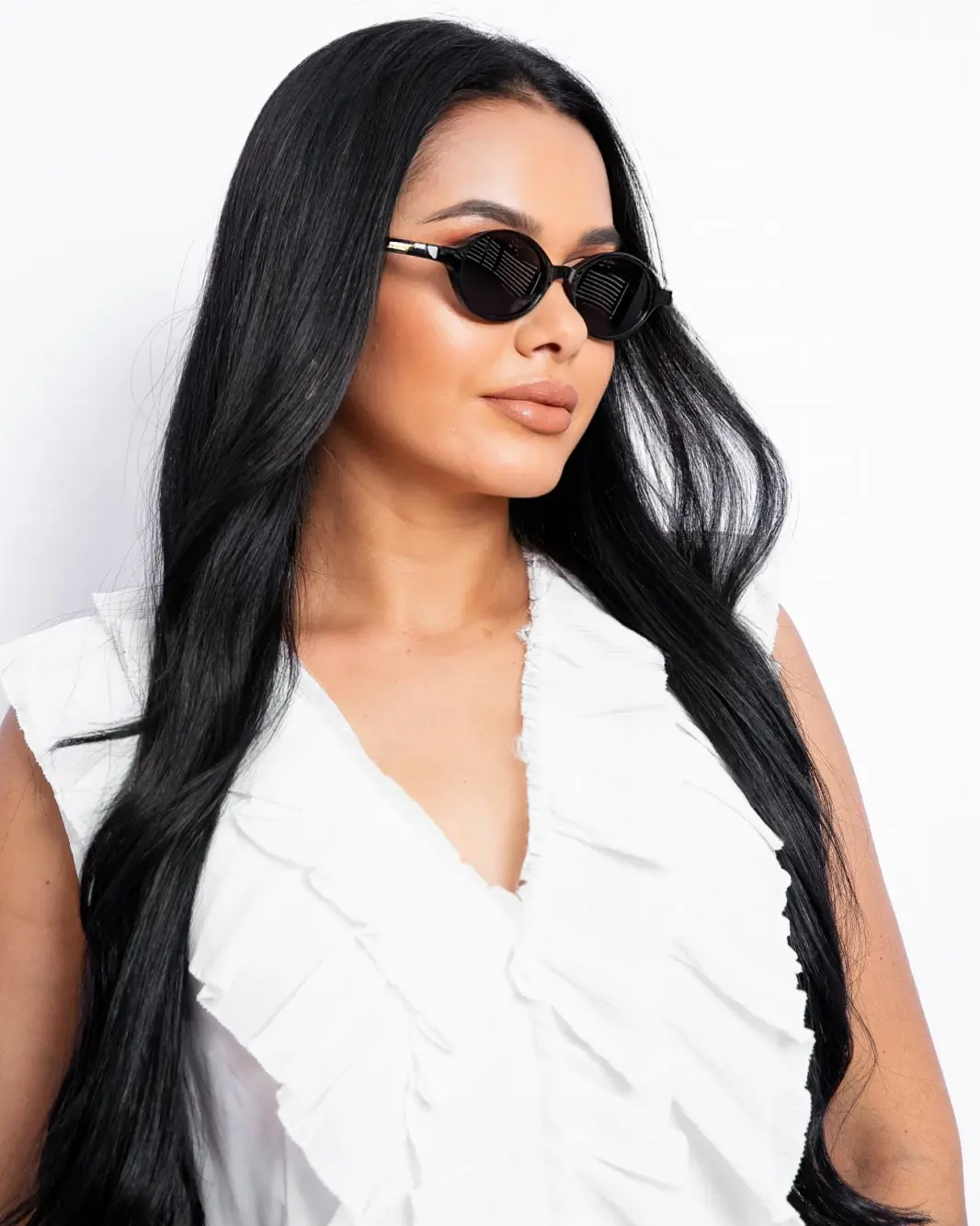 Óculos de Sol Talita – Acetato Premium Preto | Design Marcante e Contemporâneo